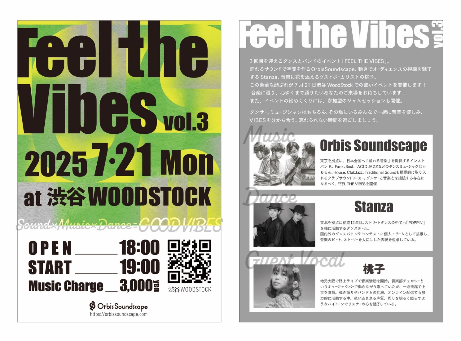 ダンサー、ミュージシャンはもちろん、その場にいるみんなで一緒に音楽を楽しみ、VIBESを分かち合う、忘れられない時間を過ごしましょう。